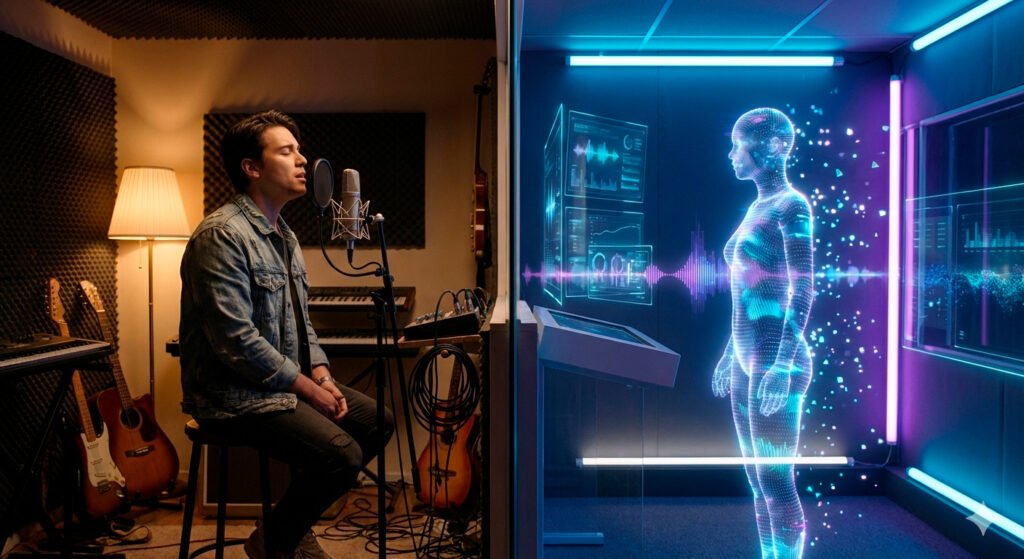 Inicio Yaxk’in Servicios Comunidad Canciorama Escuela de Compositores Blog Contacto Escríbenos Artistas creados con Inteligencia Artificial: ¿la nueva apuesta de las disqueras? enero 23, 2026 Blog Comparte: Hay algo que se está moviendo debajo del escenario y no todos lo están viendo. No hace ruido. No da entrevistas. No se equivoca en vivo. No se […]